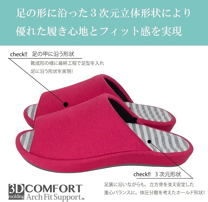 ●足の形状にフィットして疲れにくい!歩行しやすい姿勢をサポートしてくれる立体成型スリッパです。