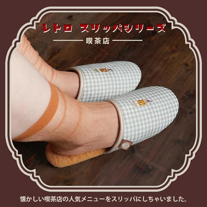 [FASPROJECT] レトロ喫茶 ソフトスリッパ スリッパ (レディース) 前とじ 前詰まり ルームシューズ 婦人 女性 チェック SHR-31519