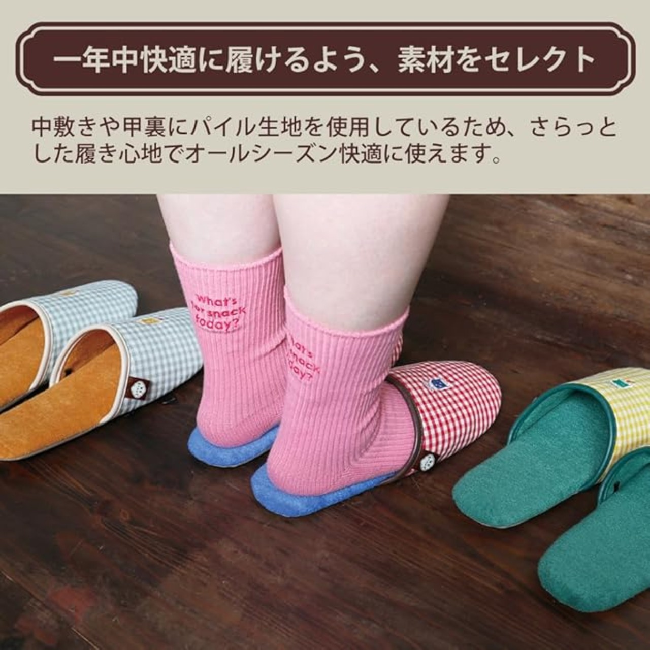 【一年中快適に履けるよう、素材をセレクト】中敷きや甲裏にパイル生地を使用しているため、さらっとした履き心地でオールシーズン快適に使えます。