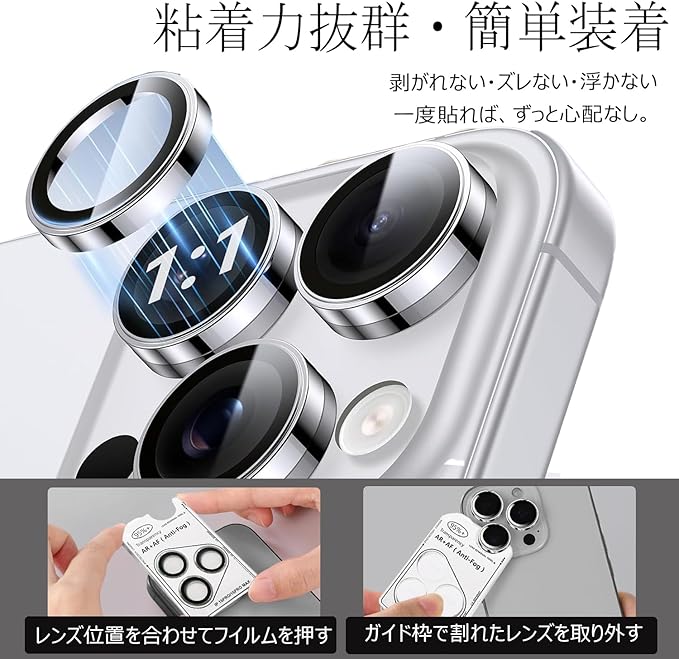 iPhone 17Pro/17 Pro Max/16 Pro/16 Pro Max 用 カメラ保護 レンズカバー 耐衝撃 ARコーティング 高透過率キズ防止 チタン合金 9H いphone17pro 16pro カメラ保護 レンズフィルム 黒縁取り 露出オーバー防止 粘着性強い 貼りやすい 17プロ・16プロ ・17プロマックス用 レンズフィルム (シルバー)