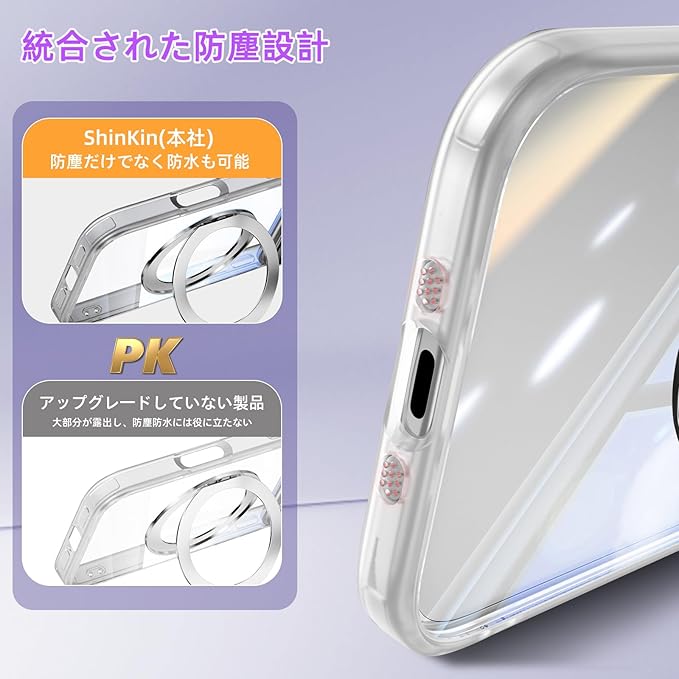 [高品質素材と全面保護]この iPhone 17 Pro Max ケースは、背面に高級なハードPC素材を採用し、側面にTPU素材を使うことで、抜群の耐衝撃性を実現しています。クリアで透明・黄変しない。この耐衝撃ケースは厳格な落下テストを経て、360 全方位エアクッションとアップグレードされたクッションエアバッグは強力な保護を提供した。そして、アップグレードされた強化ガラスレンズフィルム付きなので、傷から恐れることなく、カメラを完全に保護します。前面と背面カメラ部のフチを高く設計し、液晶画面とカメラレンズをキズから保護します。