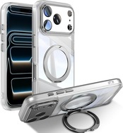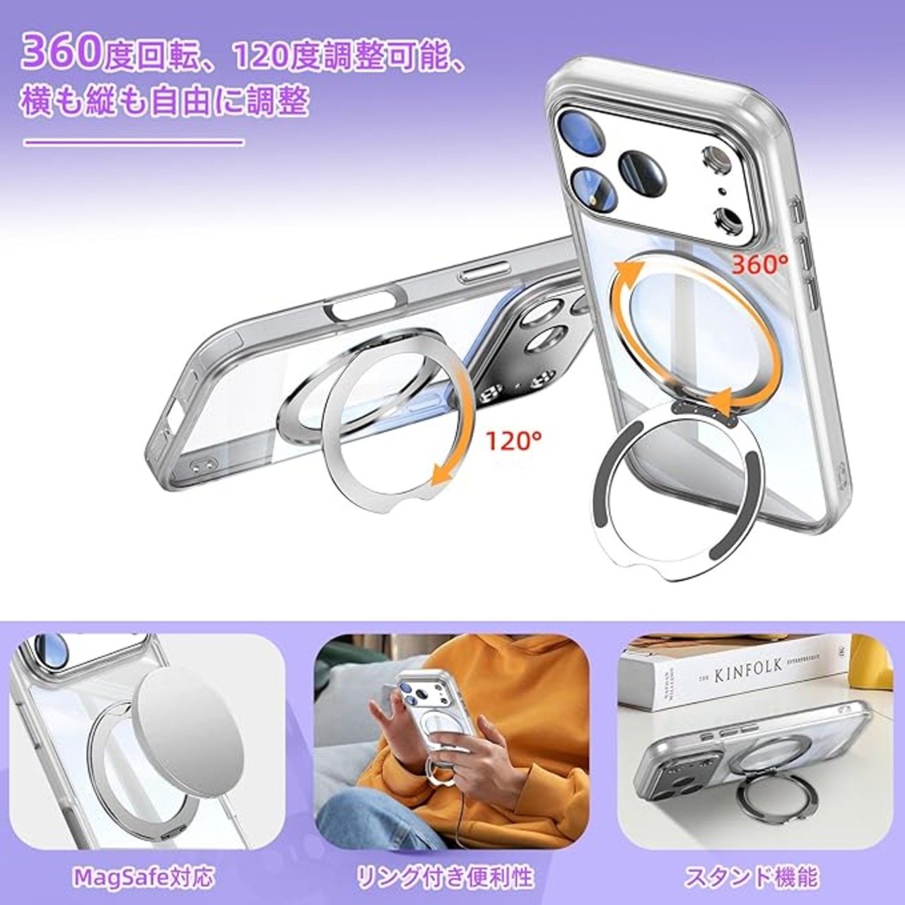 [ShinKin] スマホケース iPhone 17 Pro Max 用 ケース カバー 透明PC + TPU素材 ケース リング付き カバー スタンド機能 スマホケース 透明レンズフィルム保護機能付き 強化された保護 携帯電話のレンズフィルム 軽量 耐衝撃 擦り傷防止 落下防止 車載ホルダー 360 回転 ケース iPhone 17 Pro Max 用 (ホワイト)