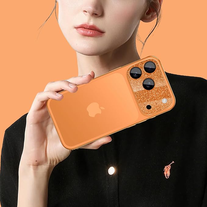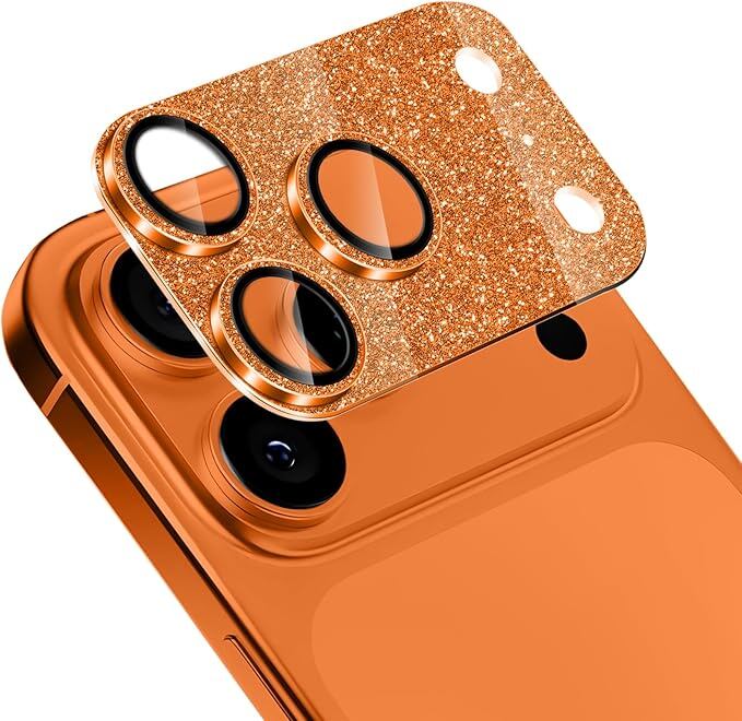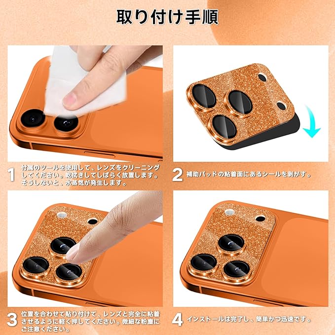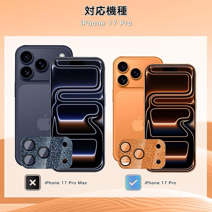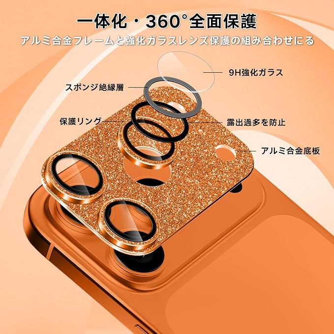 カメラフィルム iPhone 17 Pro(2025) 対応 カメラ保護 強化ガラス+アルミ合金 カメラカバー キラキラ レンズカバー キズ防止 耐衝撃 高透過率 貼り付け簡単 レンズ保護 アイフォン17プロ(2025) 用 (オレンジ)