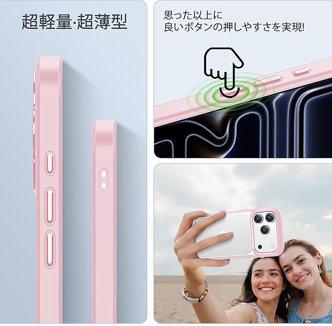 【滑りにくい・構造がいい】iphone17proカバーの保護性能を保ちながら、スマートさを損なわないよう、薄さと強度のバランスを取り、手にフィットする程よい厚みで、快適さが保ち、手に持ったときの負担もかかりません。滑り止め加工したケースは持ちやすく滑りにくくて取り扱いはしやすいです。装着・脱着も簡単になります。ワイヤレス充電やApple Payにも対応します。