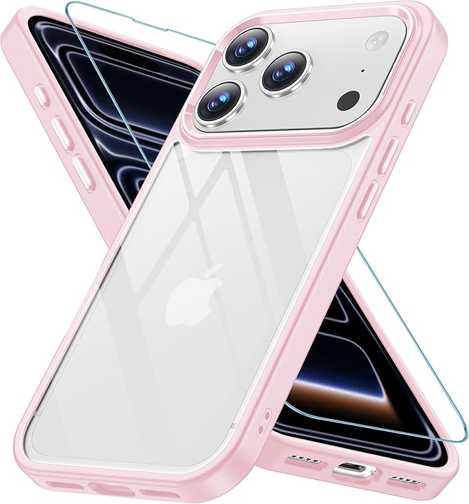 AXAG iPhone 17 Pro 用 ケース ガラスフィルム付き アイフォン17Pro 用 ケース 耐衝撃 黄変防止 いphone17pro対応 ワイヤレス充電対応 アイホン17pro 用 スマホケース SGS認証 あいふぉん17プロ 用 カバー 6.3インチ ストラップホール付き ピンク