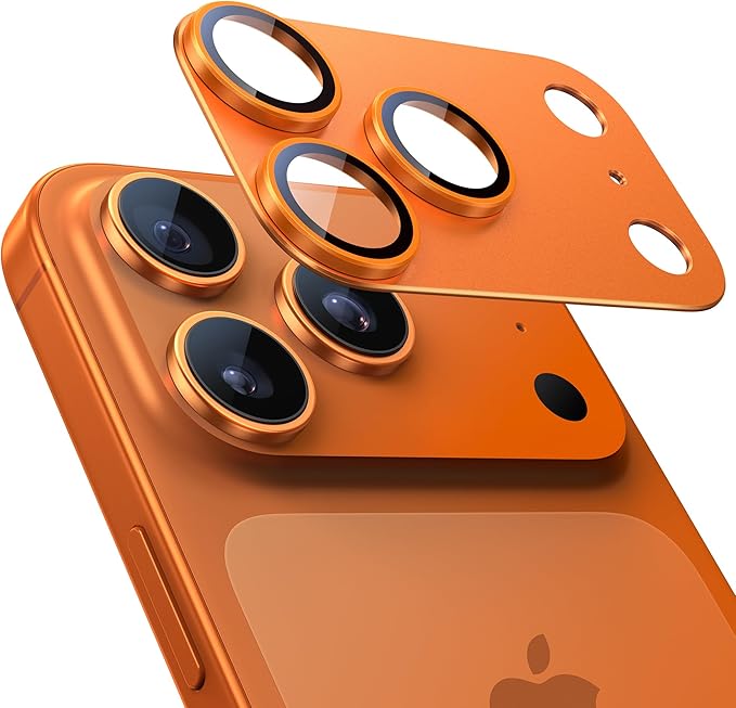 NIMASO カメラフィルム iPhone 17 Pro Max 対応 カメラ保護 アルミ合金フレーム+9H強化ガラス 全面保護 耐衝撃 超薄設計 黒縁あり いPhone 17 Pro Max 専用 レンズカバー 1枚セット オレンジ DSC25I1943