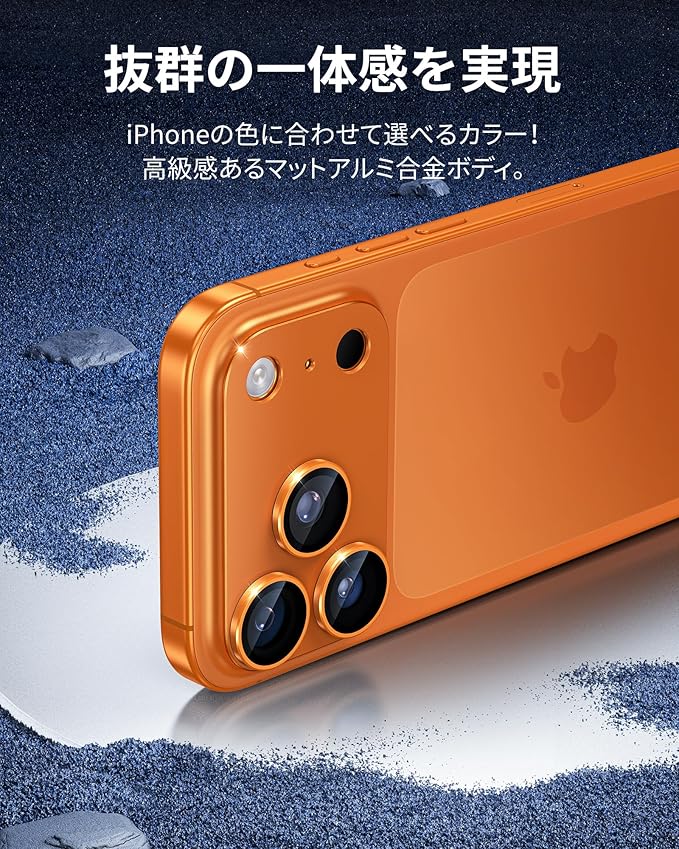 【全面保護・一体化デザイン】アルミ合金製の台座と9H硬度の強化ガラスを組み合わせた一体型設計で、レンズ部分全体をにカバーしています。いPhone17promax カメラ保護に最適な設計で、擦り傷や衝撃からiPhone 17 pro max カメラを徹底的に守り、高い耐久性を実現します。