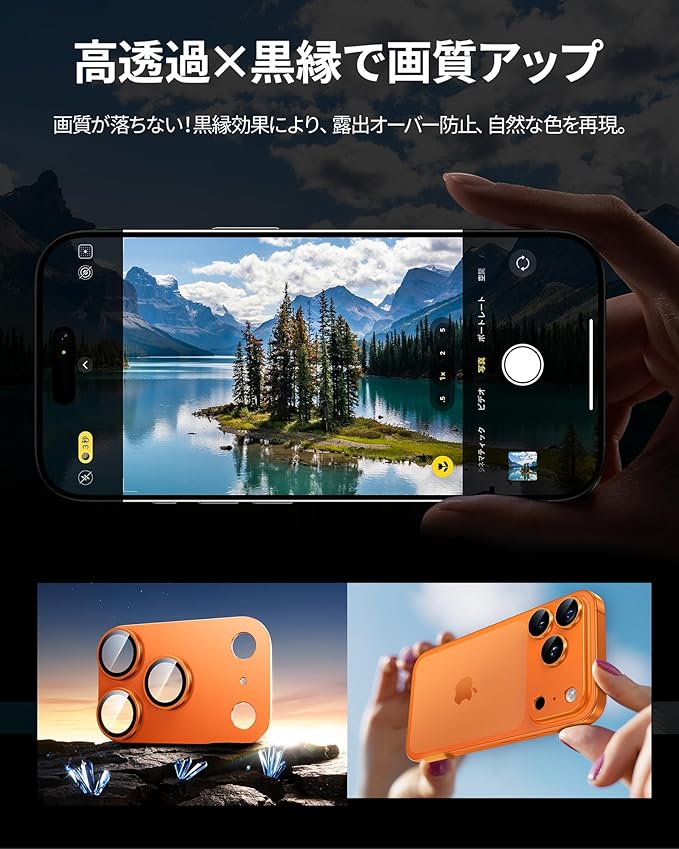 【高画質が続く】iPhone 17 pro max レンズカバーはレンズ周囲を黒縁することにより、フラッシュ撮影時の乱反射や白飛びを防止。レンズ保護に最適な高透過率ガラスで、クリアな画質をそのまま再現します。