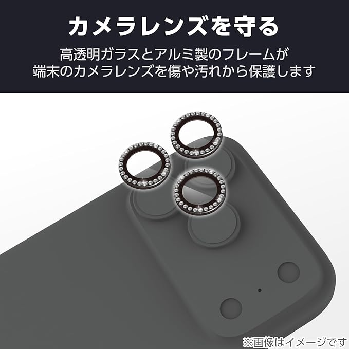 エレコム iPhone 17 Pro カメラフィルム 光沢 強化ガラス 硬度10H ラインストーン装飾 ARコート 指紋がつかない 気泡が入らない 【貼り付けツール付き】 ブラック PM-A25CFLLGRBK