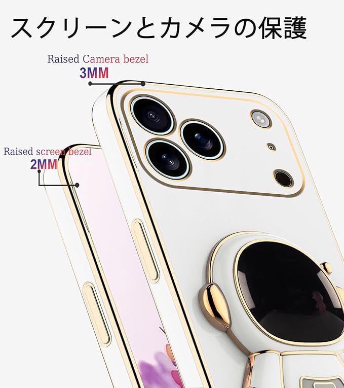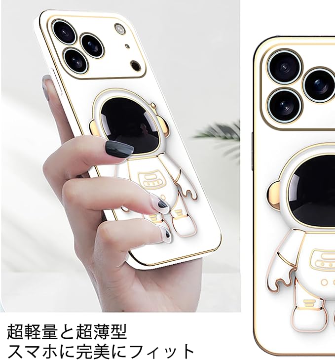 ケース対応:iPhone 17 Proケース宇宙飛行士隠し スタンド機能 For iPhone 17 Proカバー耐衝撃 可爱い 人気立体 軽薄型 (白)