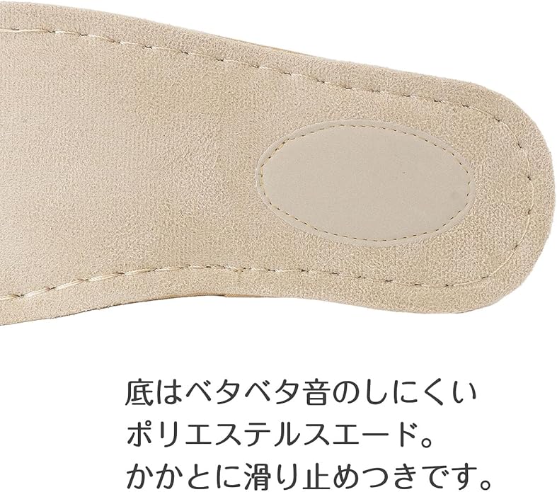【特徴】 ● ざっくりとした織りでさらっとした足ざわりの麻を中敷きに使用しています ● 甲は通気性のよく足にフィットして歩きやすいクロスバンド型 ● 底はベタベタ音のしにくいポリエステルスエード。かかとに滑り止めつきです