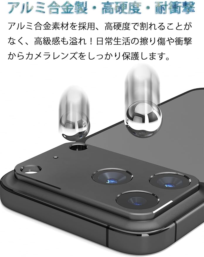 【耐衝撃】アルミ合金素材を採用、高硬度で割れることがなく、高級感も溢れ!本製品を貼ると、レンズの周辺がレンズより0.3mm高くなるので、レンズに直接接触しにくくなり、日常生活の擦り傷や衝撃からiPhone17プロカメラレンズをしっかり保護します。