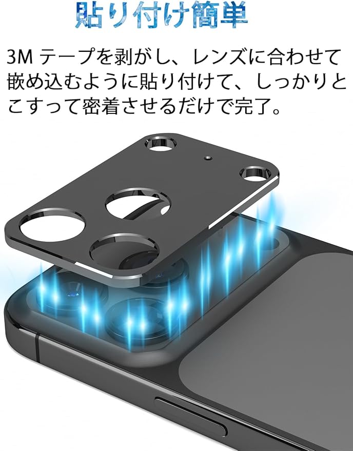 【嵌め込み式・簡単に貼り付け】レンズに合わせて嵌め込むように貼り付けて、密着ようにレンズカバーを押さてだけで完了します。初心者でも簡単にレンズカバーを貼り付けます。粘着力の強い3Mテープを採用しており、脱落しにくいで長時間の使用に耐えます。