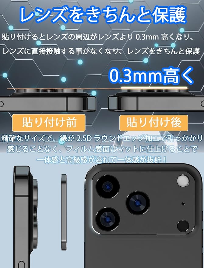 【対応機種】iPhone 17 Pro (2025年9月発売モデル)ご注意:本製品はレンズ部分に穴が開いている仕様です。( ご留意ください:レンズフィルムの接着剤は既に改良を行いました。2025 年 10 月 9 日以降の製品を基準とさせていただきます。)