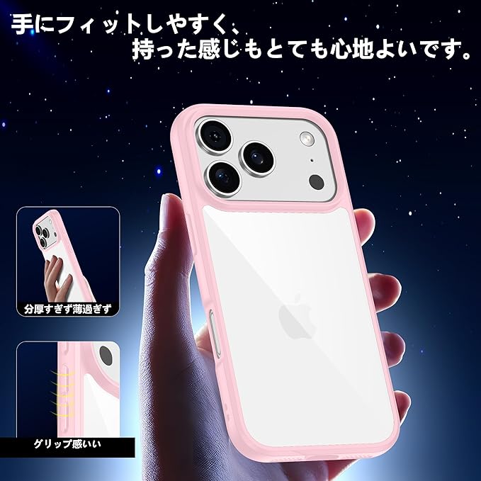 【指紋防止&軽量】iPhone 17proケースの表面には指紋防止オイルコーティングが施されているので、指紋を防ぎながらアイフォン17proケースの表面の美しさを保ちます。軽くて薄いデザインのおかげで、片手であいふぉん 17proを持っても余分な重さがなく、長時間持っていても疲れにくく、裸のiphone17 プロを握った時に極めて近い感覚を味わえます。