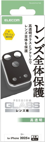 エレコム iPhone 17 Pro カメラレンズ 保護カバー 強化ガラス 硬度10H 指紋がつかない 気泡が入らない ブラック PM-A25CFLLP1BK