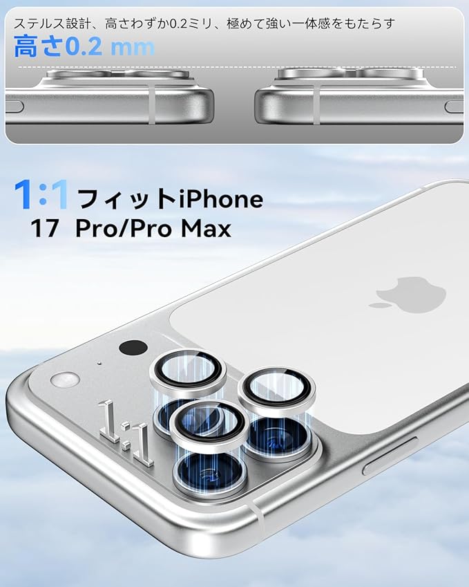 CloudValley カメラフィルム iPhone 17 Pro/Pro Max 用、 1:1 インビジブルパーフェクトフィット、 ケースフレンドリー、 9H 強化ガラス、 アンチグレア、 スクラッチプルーフ、 インストールイージー シルバー