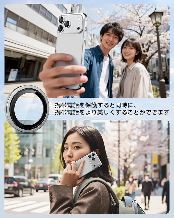 【目立たないフィット感、際立つスパークル】iPhone のデザイン美学に合わせた設計で、1:1 のサイズで製作されたメタルリングはレンズと自然に融合し、ほとんどの iPhone 17 Pro/ProMax 用ケースにも適合します。同系色を選べば控えめな印象に、対照的なブリングカラーを選べば大胆できらめくスタイルになり、周りの視線を引くことができます。