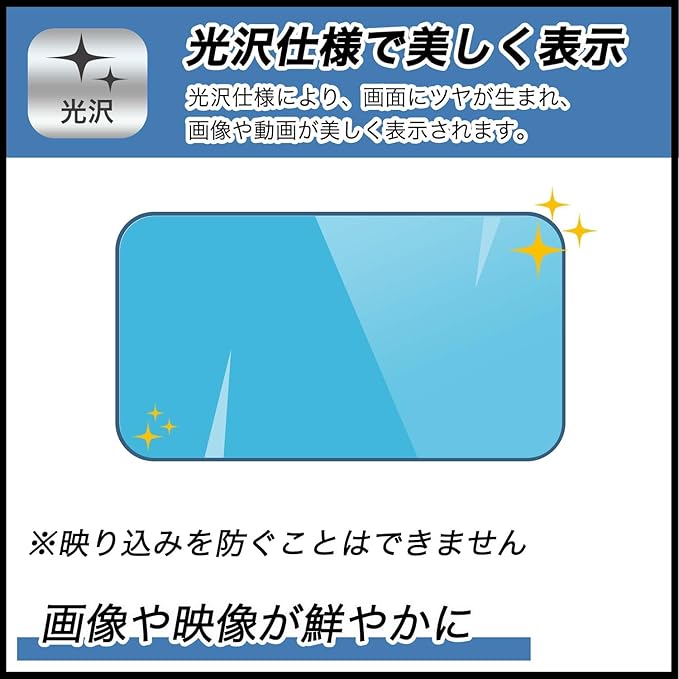 光沢仕様の特徴を活かし、画面には美しいつやが加わり、画像や動画がより一層美しく、鮮やかに表示されます。