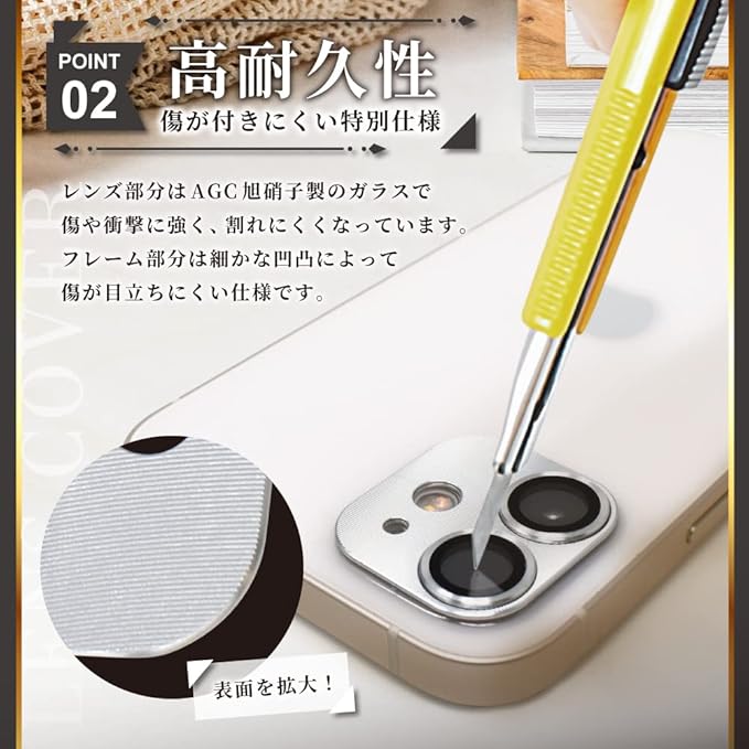【高品質なカメラレンズフィルム】レンズフィルムは日本のAGC旭硝子を使用し、表面はフッ素コーティング、プラズマ溶射処理を施しています。本体カメラを全面覆うフルガードタイプです。