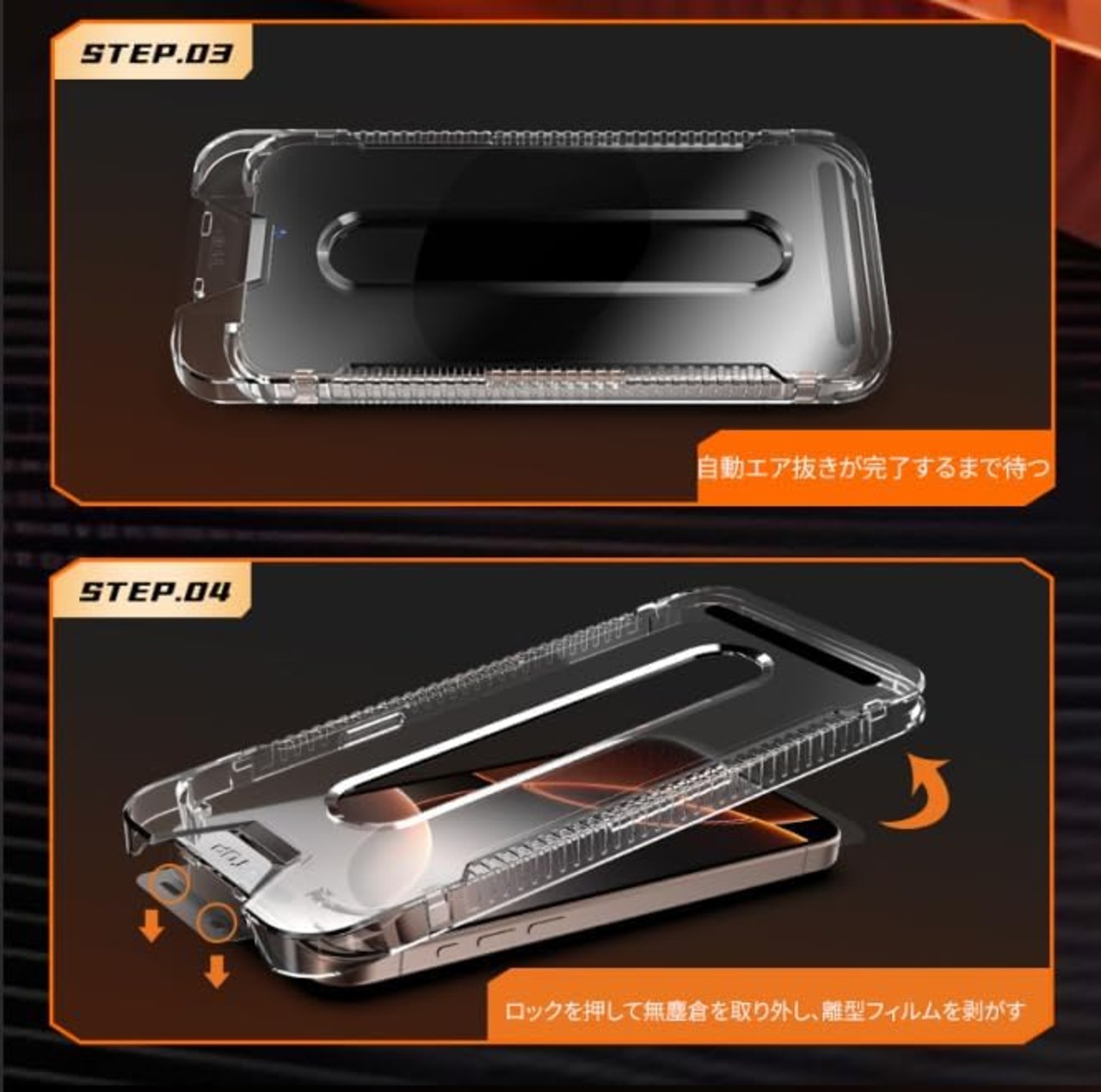 気泡・ズレの心配なし|専用の無塵ボックス付きEasyAppケースで、ほこりを遮断しながらまっすぐ貼れる。貼りやすい設計で、初心者でも3ステップで簡単に仕上げられる保護フィルム。