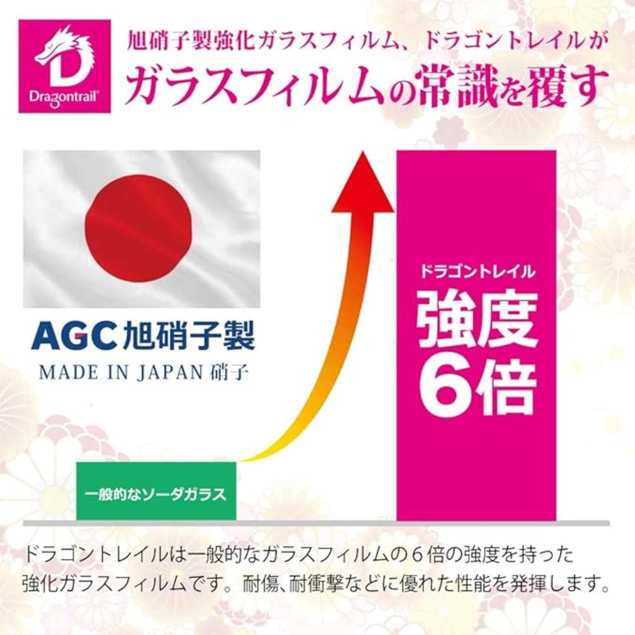 「スマートフォンのガラスフィルムの常識を覆す」日本製旭硝子Dragontrail「ドラゴントレイル」採用(made in Japan硝子)※本商品は全面吸着型で、フィルム全体が画面に接着するタイプです。