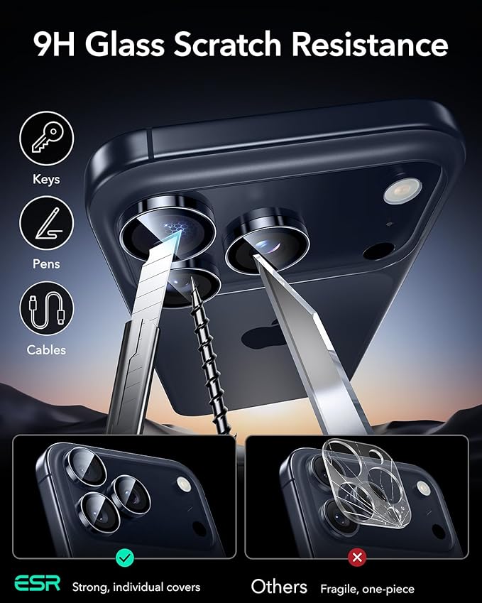 【高度AR反射防止】高度なAR技術と内蔵アンチグレアリングを採用し、スマートフォン本来のカメラ本来の色彩コントラストと鮮明さを維持しながら、映り込みを軽減。元のカメラの画質を完璧に再現します。これにより、昼夜を問わず、より明るく鮮明なポートレートを撮影でき、あらゆるディテール、色彩、そして瞬間を捉えることができます。また、傷や摩耗からスマートフォンのレンズを保護し、デバイス寿命を延ばします