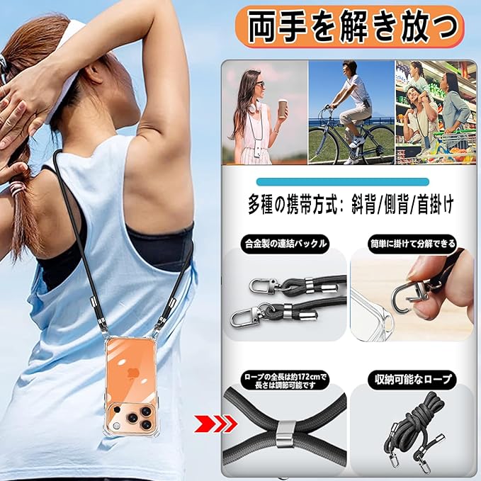 【ストラップ2枚付き & 両手を解き放つ & ワイヤレス充電対応】本 iPhone 17 Pro (2025)対応ケースにはフィンガーストラップとネックストラップが付属します(フィンガーストラップ長さ:10cm、ネックストラップ装着時の最大調整長:86cm。)電話ケースの特別な四隅のデザインにより、電話を縦または横に肩に掛けることができ、ストラップはいつでも調整および取り外しできます。このアクセサリーはファッションだけでなく、通常のストラップよりも快適で実用的です。 作業、旅行、出張、ショピング、散歩、コンサート、パーティーに最適です。(あなたは受け取るでしょう:1x iPhone 17 Pro 用 ケース + 1x フィンガーストラップ+ 1x ネックストラップ)