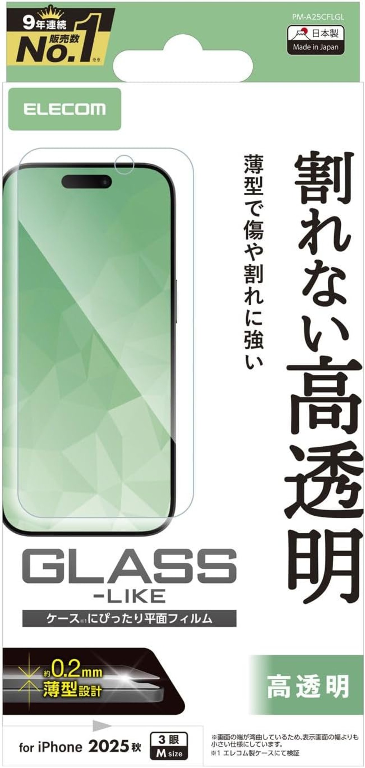 エレコム iPhone 17 Pro フィルム 光沢 グレア ガラスライク 硬度9H 指紋がつかない ハードコート加工 気泡が入らない PM-A25CFLGL