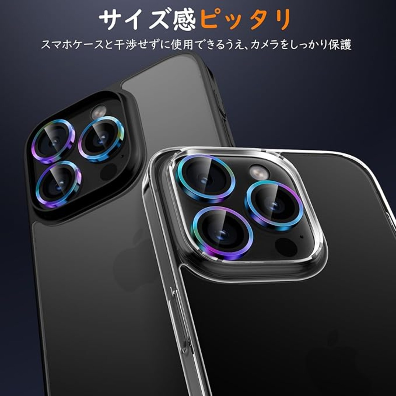 【スマホケースと干渉せず・0.2mm極薄型】本体に沿って精密に設計され、カメラレンズにピッタリとフィットし、引っかかり感がなく、ほとんどのケースと干渉しません。フィルム貼付後に、カメラレンズよりわずか0.2mm高くなっている。さらに、スマホと同じの配色で、いPhone本来の崇高な美しさと高級感を損なわなく、いつものスマホに上品さをプラス。