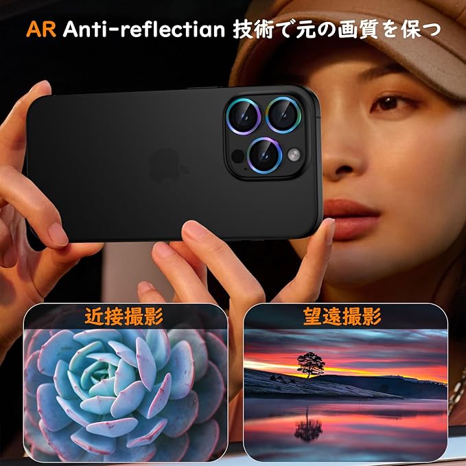 【露出オーバー防止・超高透過率】本製品は露出過度を避けるために、黒縁のデザインを採用し、フラッシュ使用時に光が乱反射、写真が白っぽくなる現象を軽減します。また、フィルム表面は光学技術・ARコードを施され、光の透過率は99.99%に達し、i-Phone本格的な撮影体験をそのままに楽しめます