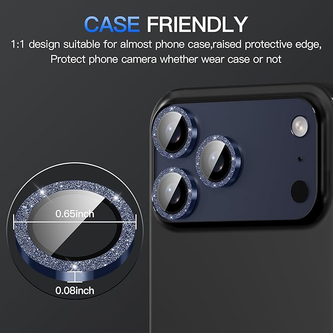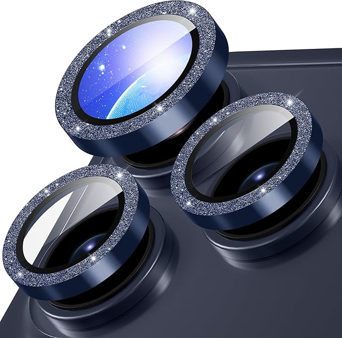Suoman for iPhone 17 Pro/17 Pro Maxカメラレンズカバー アイフォン17プロ/プロマックスカメラレンズ保護フィルム キラキラ-紺色