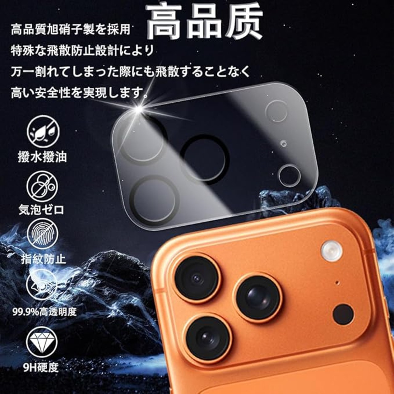 【飛散防止設計】iphone 17 pro カメラフィルム 高品質の日本硝子素材を採用します。飛散防止加工により、万が一ガラスが破損した場合も飛び散らず、破片は張り付いたままの状態になります。スクリーンを安 全に保護しながら破損による怪我を防ぎます。とっても安全!