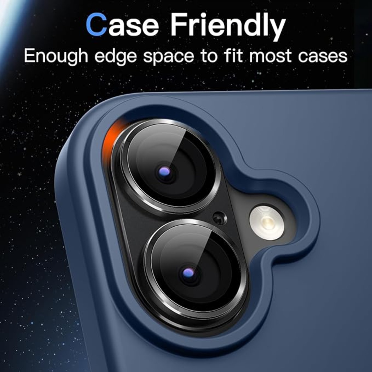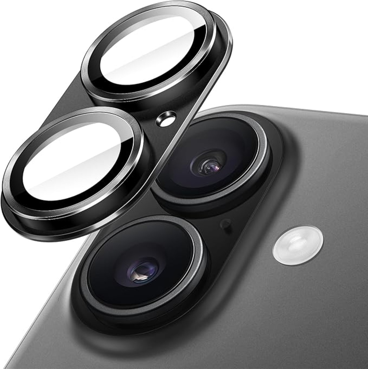 JETech iPhone 17 6.3インチ用 カメラレンズフィルム 全面保護 9H強化ガラス製 リングカバー マットメタルプレート ケースに干渉なし 1枚入り (ブラック)