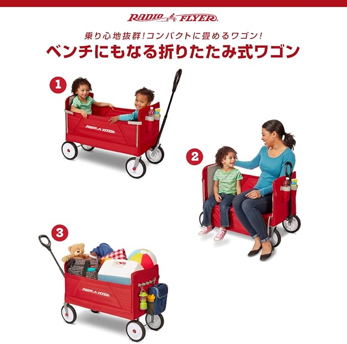 Radio Flyer ラジオフライヤー 3-in-1 イージーフォールドワゴン EZ FOLD WAGON 3950 3WAY 折りたたみ式 ワゴン 2人乗り ベンチ クッション ボトルホルダー付
