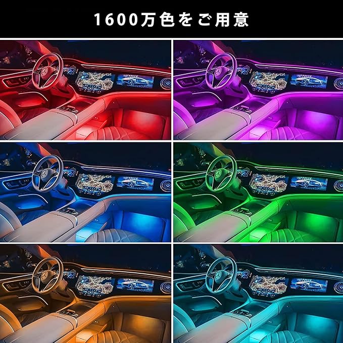 【ダイナミックミュージックシンクロ】高感度マイクを内蔵した車内LEDライトは、周囲の音楽とサウンドで色と速度を調整します。 退屈な車での移動に別れを告げ、ライトや声を変えるカーステレオの音楽を楽しみましょう。