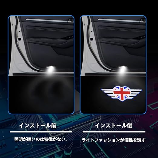 車カーテシーランプ クーパーワンS R55 R56 R60 F55 F56 F60 カーテシライトロゴ投影 車用ドアランプ 工具付 2個セット (01)