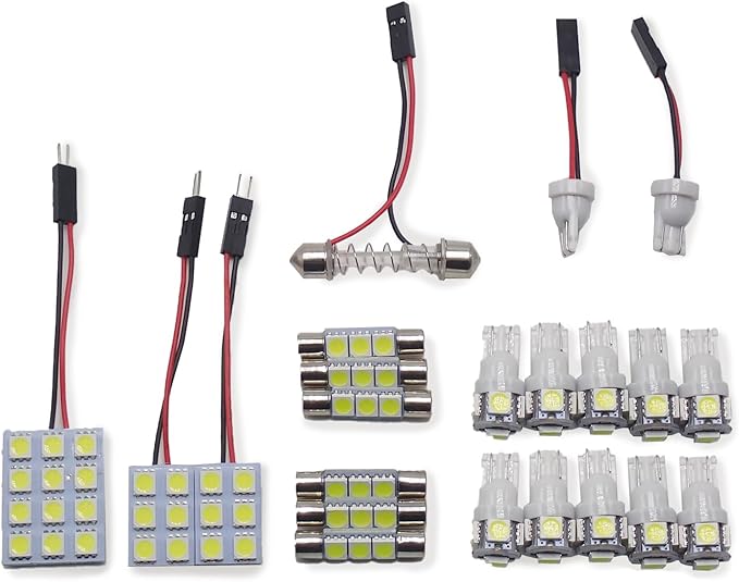【セット内容】 ・フロントランプ 2個(6連) ・リアランプ 1個(12連) ・バニティランプ 2個(ウエッジ型 T10) ・リアバニティランプ6個(3連) ・カーテシランプ 4個(ウエッジ型 T10) ・トランクランプ 2個(ウエッジ型 T10) ・LEDバルブ 2個 (ウエッジ型 T10)