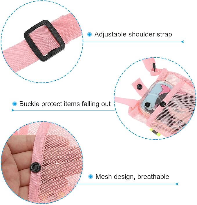 カラー:ピンクとブルー;素材:メッシュクロス;全体サイズ:220mm x 130mm / 8.6" x 5.1"(高さ 幅);推奨ボトルサイズ:直径82mm以下;パッキングリスト:ウォーターボトルスリングバッグ2個