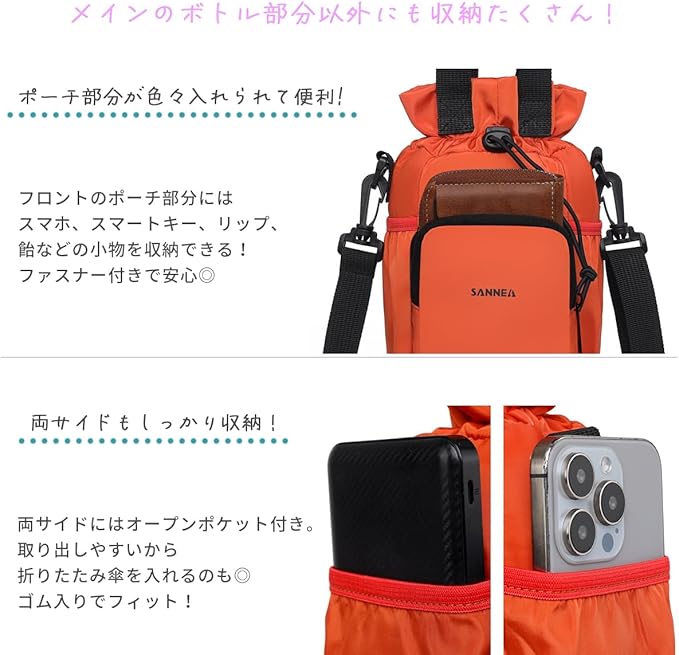 スマホやキッズスマホ等が入るポケット付きのボトルショルダー