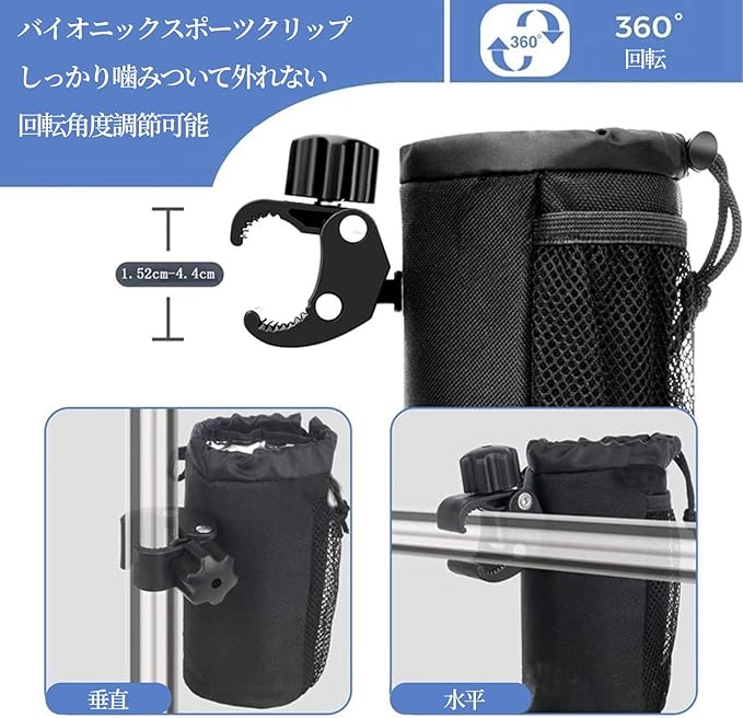 よりよい固定力:3点ストラップアタッチメントは、バイクカップホルダーを所定の位置に保ちます。ハンドルバーに装着すると、これは非常に頑丈です。跳ね返ったり、風になびいたりすることはありません。