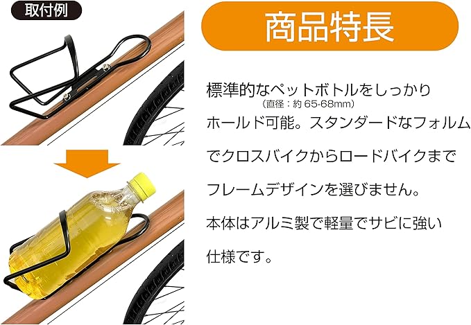 適応サイズ:65-68mmのペットボトル(標準サイズ) ※ミネラルウォーターなどで使われているスリムサイズボトルではホールド性能が低下します。
