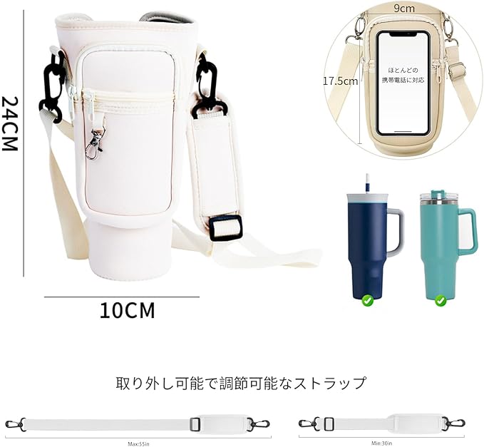 [GreenGee] 水筒カバー スタンレー用カップホルダー 【断熱・保冷・調節可能】 水筒ホルダー キャリーバッグ付き 斜めかけ 調節可能なショルダーストラップ付き 対応スポーツボトル 魔法瓶用 正規品 水筒キャリングケース アウトドア ハイキング ウォーキング 旅行用