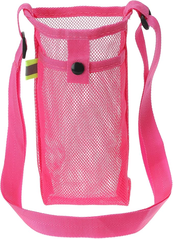 PATIKIL 22mmx13 mm ウォーターボトルバッグ メッシュポータブルボトルホルダーキャリア スポーツ ハイキング キャンプ用 ローズレッド