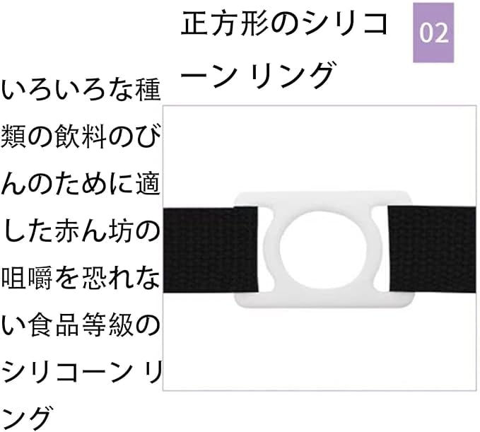 簡単装着で手ぶら移動が可能に:シリコンリングをボトルトップに通すだけで、簡単に水筒を携帯可能。両手が自由に使えるので、ハイキングやジョギング中の水分補給が楽々。滑り止め加工で、ボトルが落下する心配もありません。