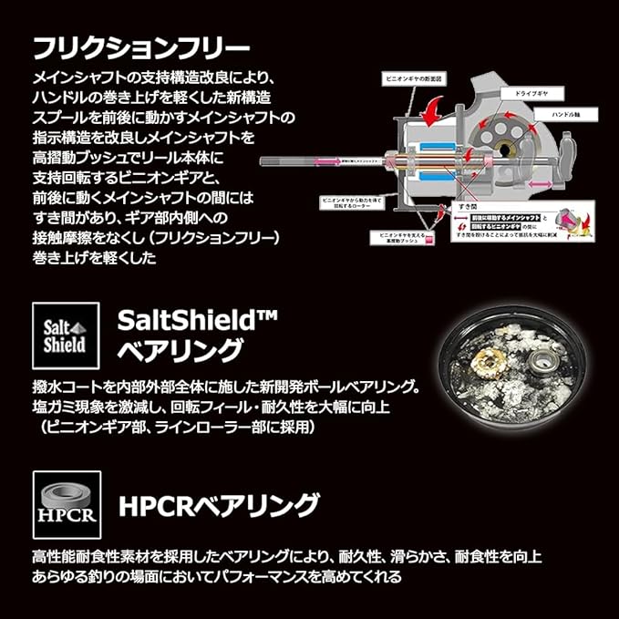 自重(g)227●ギア比6.1:1●最大 ドラグ力5●最大ライン巻き取り長(cm/ハンドル1回転)92●ボール/ローラーベアリング6+1●ラインキャパシティ(m)ナイロン・フロロ / PE0.235(8lb)-110/PE1.2-150●ハンドルノブセミラウンド