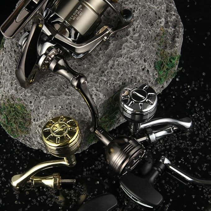 ritutou パワーハンドル スピニングリールハンドル メタル製 軽量化 ハンドルノブ 交換用 折りたたみ 左右兼用 シングルハンドル リールパーツ 釣り (1000-4000番対応, ガンメタル)