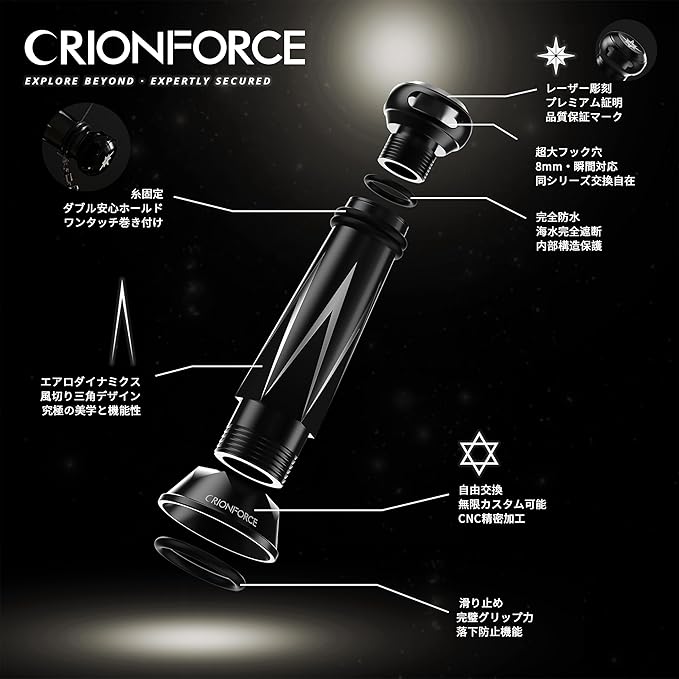 「六芒星デザイン&2025限定桜カラー」オリオンフォースの輝きを釣り場で! オリオンフォースの魂、六芒星デザインはCNC高精度加工で握りやすさと重心バランスを極限まで追求。ブラック、ガンメタ、ゴールド、レッド、そして2025年限定の桜カラーで、星の力を放つ!春の優美さを宿す桜カラーは釣り場で圧倒的な存在感。シマノ・ダイワの人気リール(22ステラ、ツインパワー、ヴァンキッシュなど)に完璧対応。オリオンフォースの誇りを今すぐ手に入れよう!