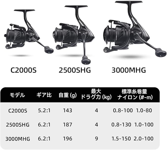 【幅広く適用】:ギア比は5.2:1と6.2:1があり。川や湖、貯水池、天然水域での海釣りや淡水釣りなど幅広く適用します。錆を寄せ付けないスピニングリール独自の高性能ベアリング、外装の防腐処理により、海釣りでもお使い頂ける。末永く快適にご使用いただけるよう、使用後はシャワーでの洗浄をおすすめする。