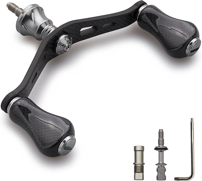【サイズ】ハンドル軸心距離90mm、ノブ20mm/21mm(幅)x15mm(厚) 【総重】29g(シマノ用)/25g/(ダイワ用)【素材】1.5K炭素布のカーボン。